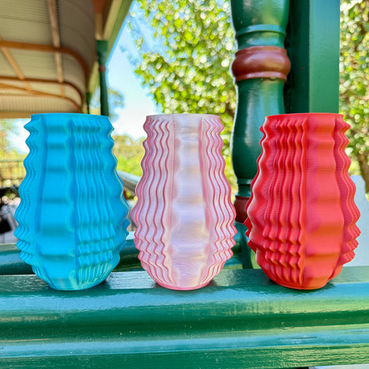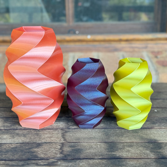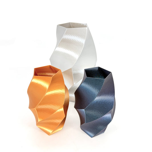 “Highly recommend this vase! It is such an interesting shape that is incredibly unique. It's a piece of art on its own let alone with flowers in it. I got it in silver PLA and it is so beautiful and iridescent. So happy with my purchase.”