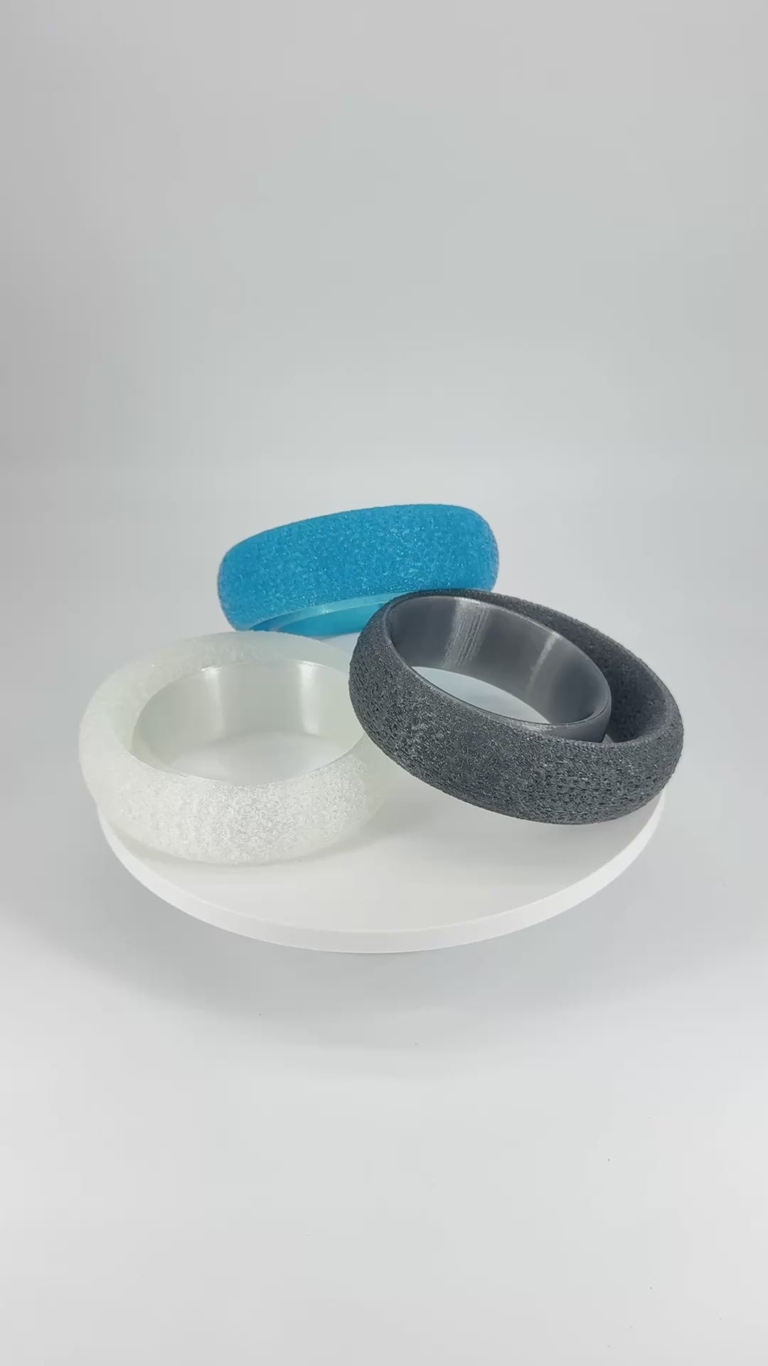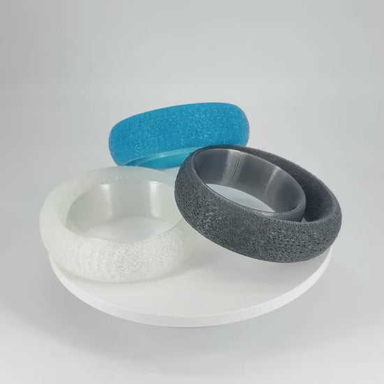 ALTAIRA features a smooth, comfortable inner band and an exaggerated textured outer, creating the illusion of two elliptical shapes in orbit. Printed in one piece, ALTAIRA is bold and utterly individual.
