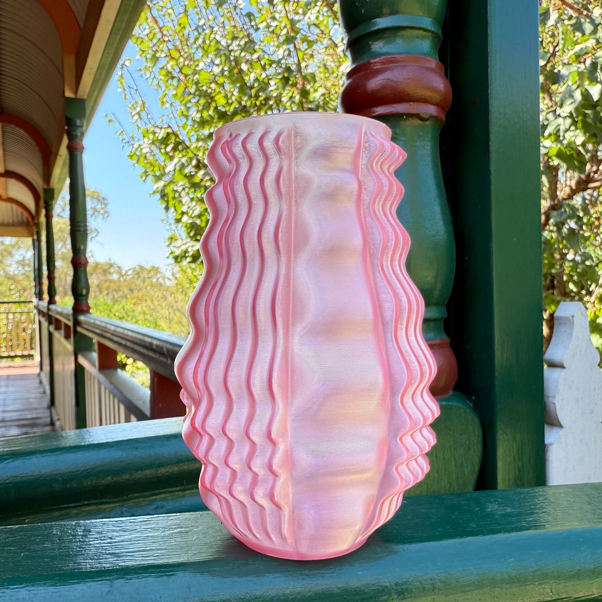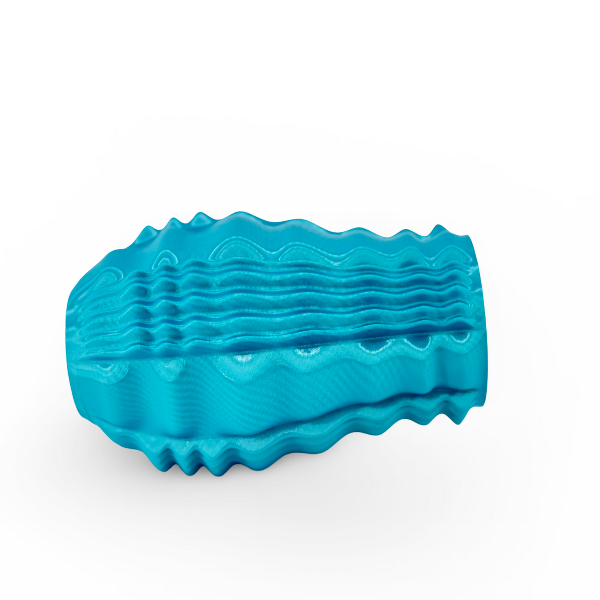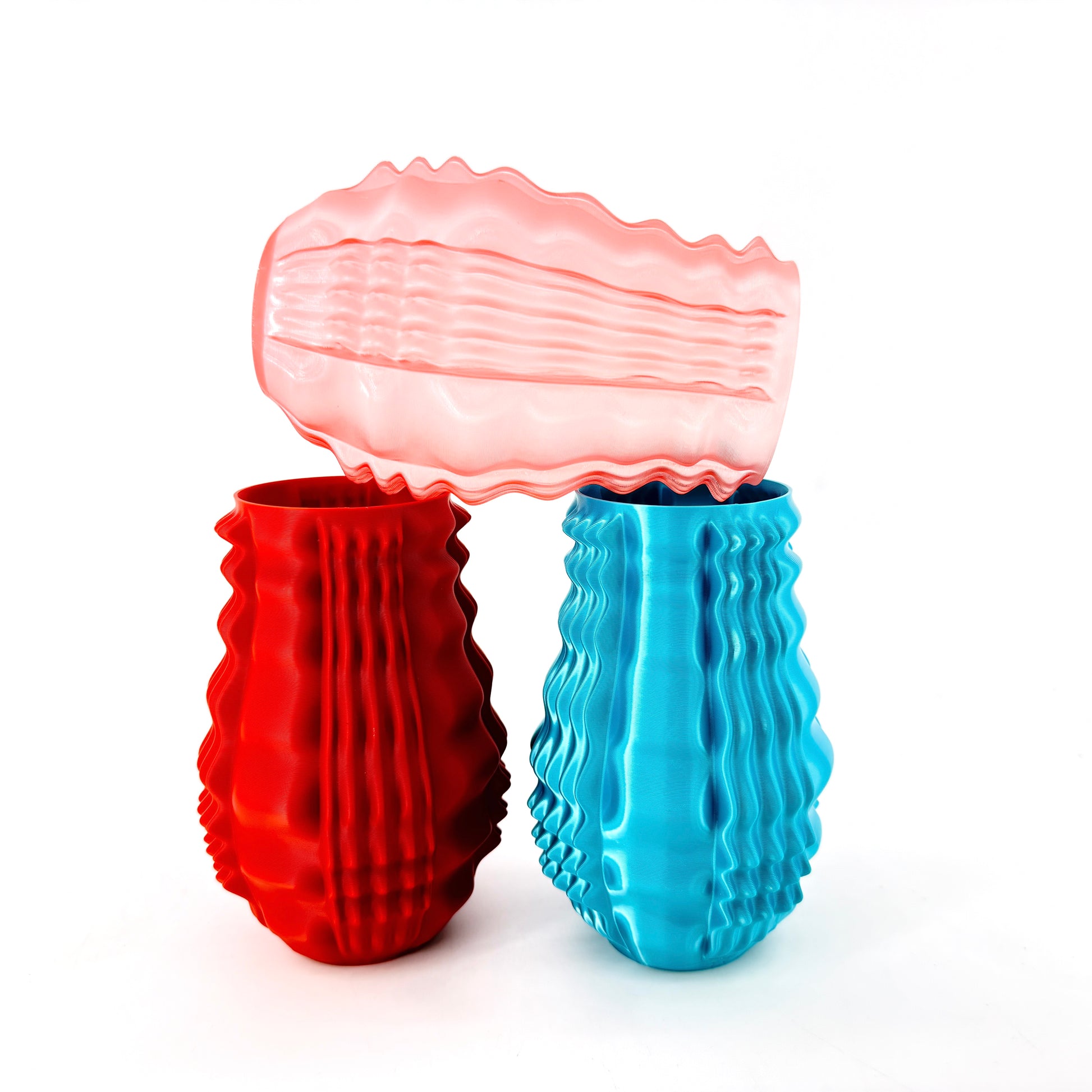 The Art Deco is a functional watertight vase, 3D printed with eco-friendly, degradable PLA bio-plastic (derived from corn starch). Plain, shiny, colour panels are alternated with wavy geometric panels.